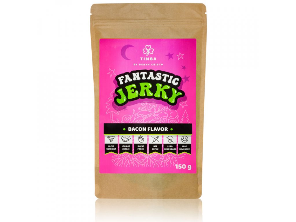 Hlíva ústřičná (na 100g jerky použito 500g hlívy), bio kokosový olej, kikkoman sójová omáčka (voda, sójové boby, sůl, ocet kvasný lihový), světlá miso pasta (voda, sójové boby, rýže, sůl), bio javorový sirup, bakticid (maltodextrin, extrakty cibule), šunková příchuť 3,7% (glukózový sirup, sůl jedlá, látky zvýrazňující chuť a vůni E 621, E 635, dextróza, aroma, barvivo červená řepa a karamel, kouřové aroma), sušený česnek, sušená cibule, citronová šťáva.